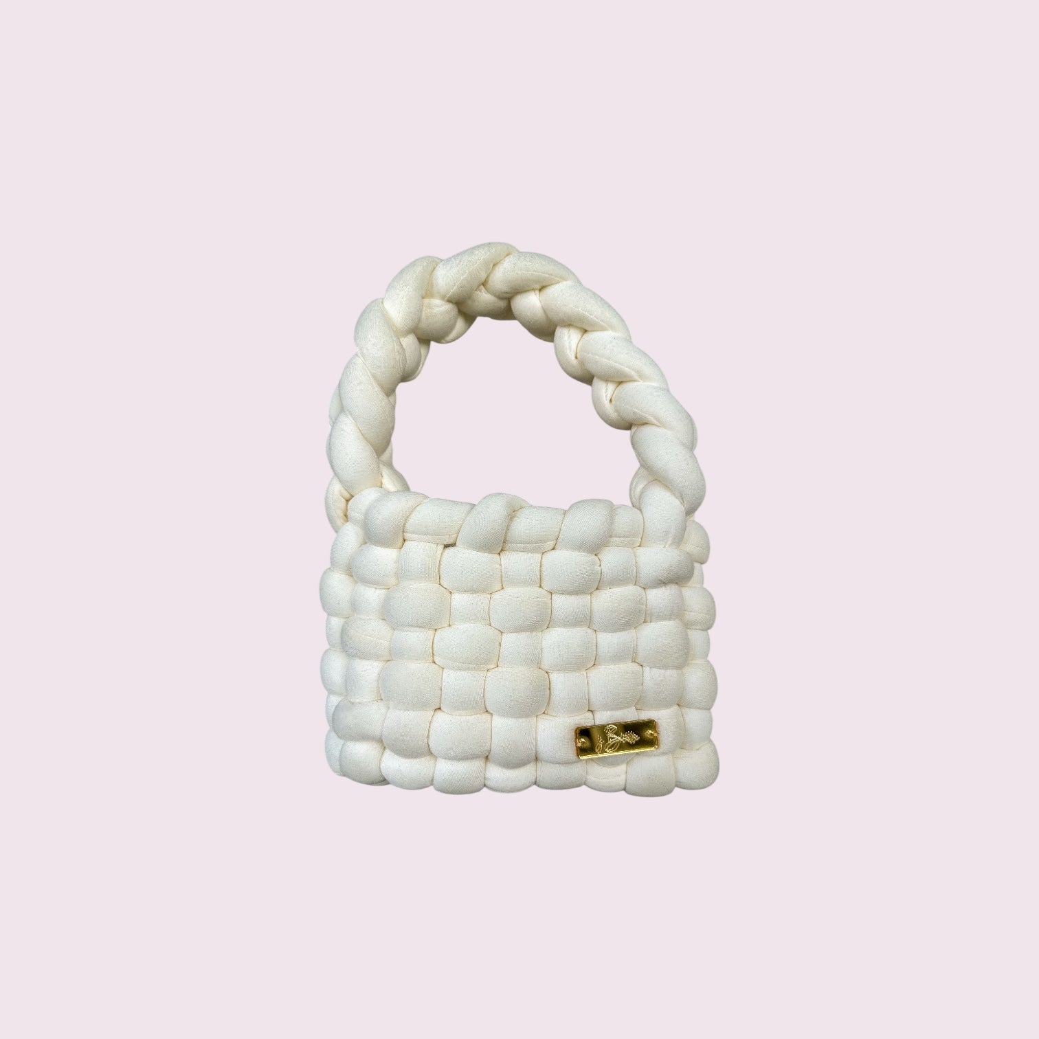 Meet Lauren: our smallest but not so small bag. The perfect size for minimalist item carriers. She is made with premium polyester chunky yarn and a luxurious satin liner. Each bag is customizable, offering a snap closure option or none at all. Each Lauren bag has the choice of 4 acrylic logo tags to tailor to your style. Each handbag arrives in our signature Emerald j Briélle dust bag, ensuring it remains pristine and protected.